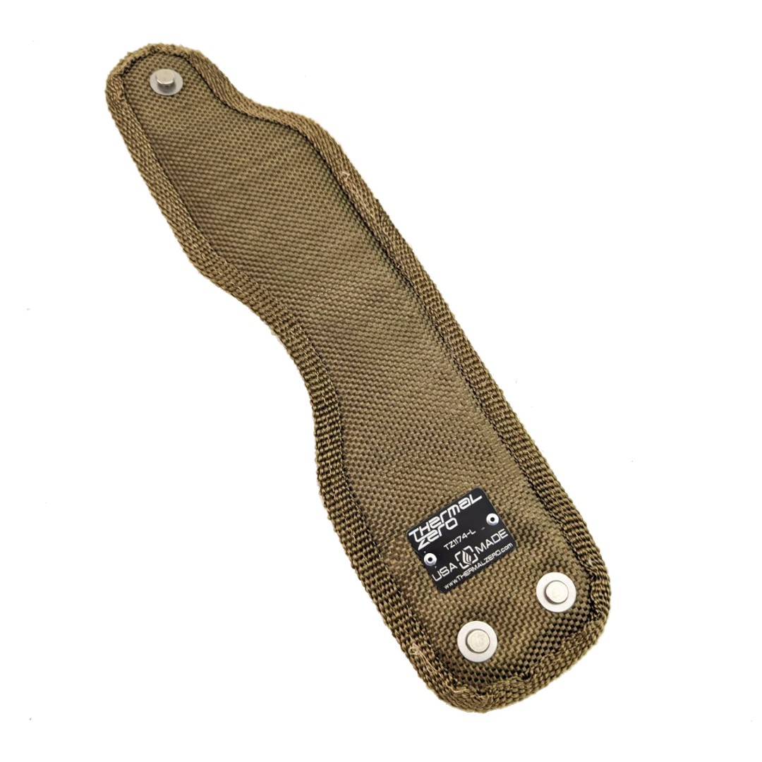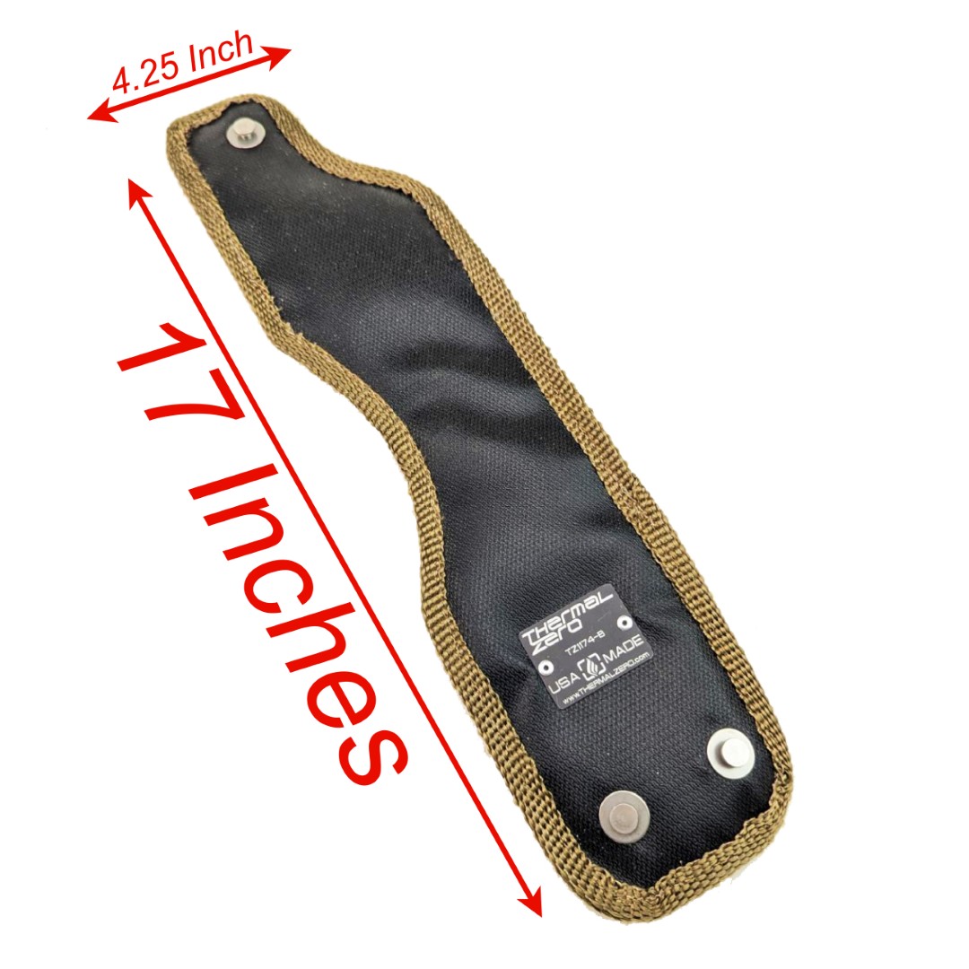 This blanket was one of our first turbo blanket designs.  It was specifically designed to address an issue of spatial constraints in an engine bay.  The blanket tightly wraps around the exhaust side of an internally wastegated T25 or T28 turbocharger and holds heat into the turbo to help spool the turbo earlier.  Because the blanket is flat, it is a perfect option when there is limited space around the turbocharger where a bulkier enclosed blanket may not fit well.