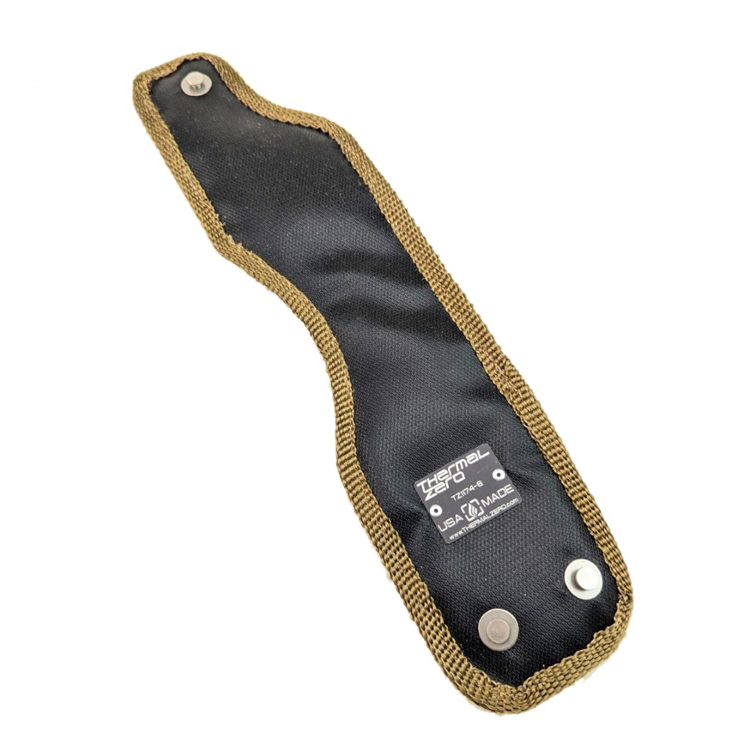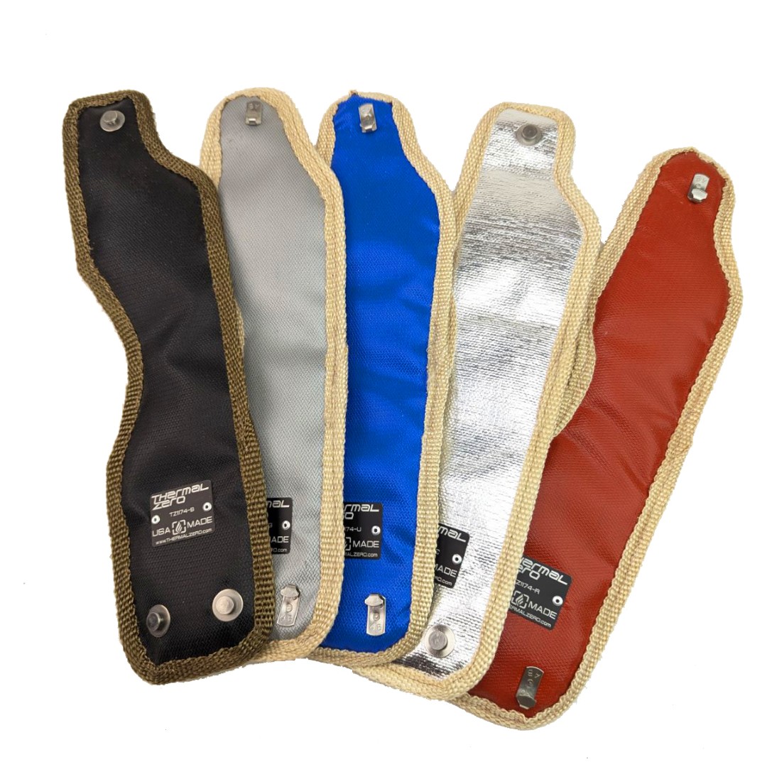 This blanket was one of our first turbo blanket designs. Â It was specifically designed to address an issue of spacial constraints in an engine bay. Â The blanket tightly wraps around the exhaust side of an internally wastegated T25 or T28 turbocharger and holds heat into the turbo to help spool the turbo earlier. Â Because the blanket is flat, it is a perfect option when there is limited space around the turbocharger where a bulkier enclosed blanket may not fit well.